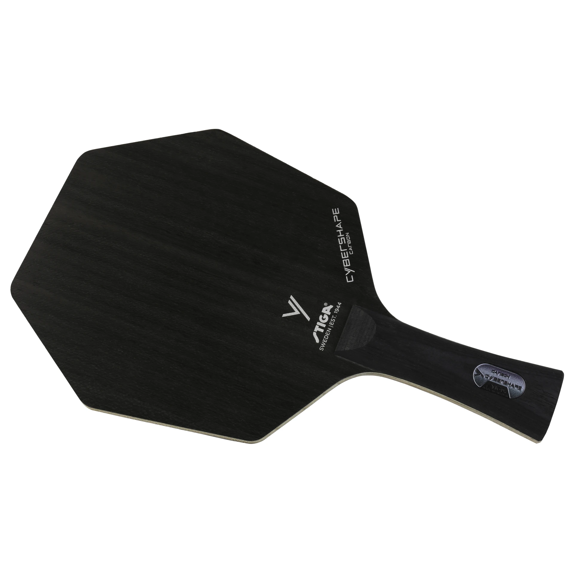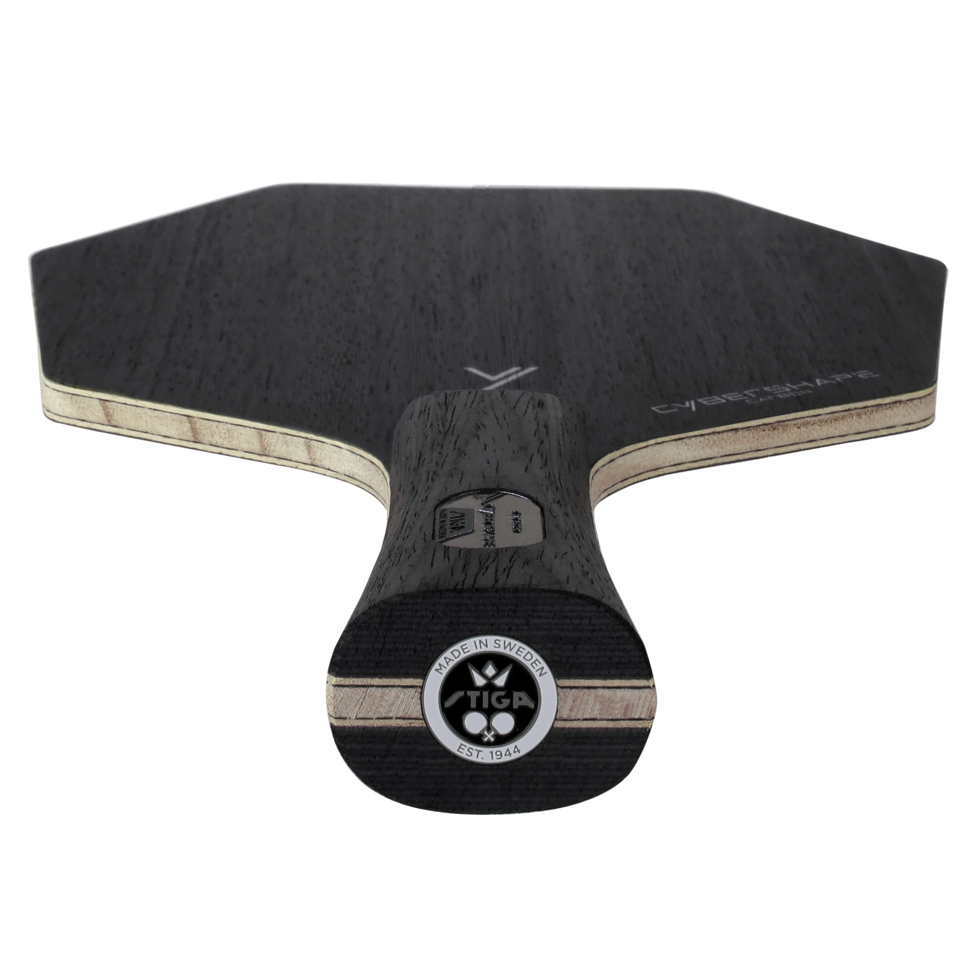 Una madera de tenis de mesa ofensiva con una forma revolucionaria, pendiente de patente y diseño protegido que proporciona un área de golpe optimizada.