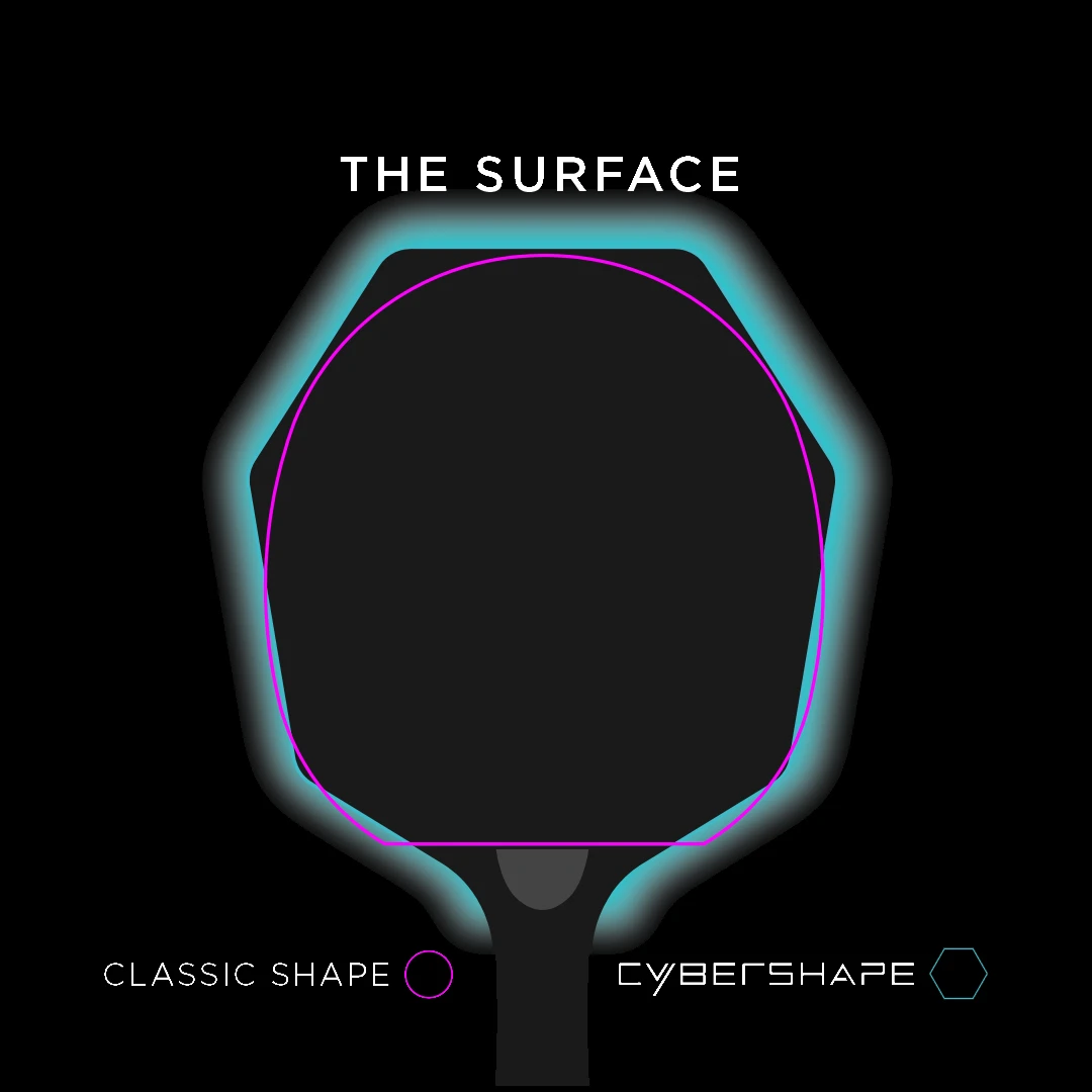 Nuestros estudios han demostrado que la zona óptima de golpeo se encuentra en la mitad superior de la hoja. Es por eso que hemos optimizado el área de golpe para que sea un 11% más grande para el agarre con la mano y un 9% más grande para el agarre con lápiz en comparación con una hoja tradicional.